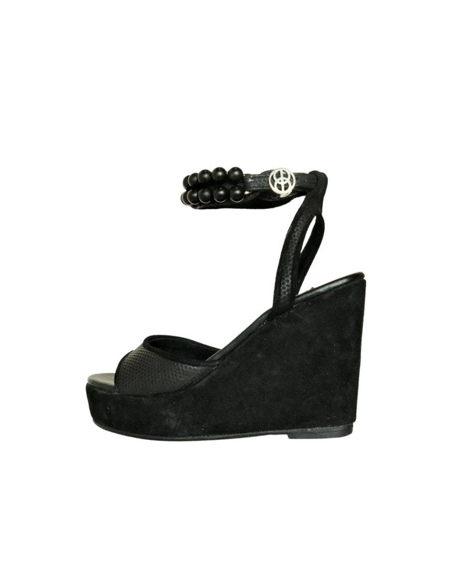 A timeless wedge handcrafted in embossed sheepskin leather, merging quiet elegance with everyday versatility. Featuring bold natural onyx stones, it offers grounded confidence, protection, and emotional clarity. A refined companion from day to night—where comfort meets sacred strength.